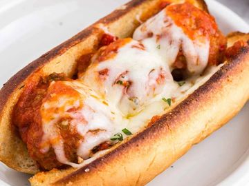 4 House made Italian Meatballs On A 10 Inch Amoroso Roll Topped With House Marinara And Mozzarella Baked To Perfection