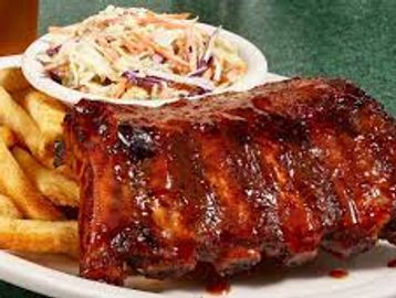 Half Rack Of Our House Smoked Baby Back Ribs-Slow Smoked And Glazed With Sweet Memphis BBQ Sauce-Served With 2 Sides And Cornbread