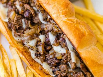 8 Ounces Of Shaved Ribeye Grilled With Fresh Mushrooms & Vidalia Onions On A 10 Inch Amoroso Roll Topped With Provolone Cheese