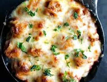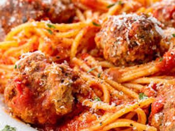 3 House Made Italian Meatballs Over Spaghetti With Marinara Topped With Mozzarella And Baked- Served With Small Salad & Garlic Toast.