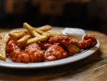 5 TENDERS BREADED AND FRIED THEN TOSSED IN MILD BUFFALO SAUCE-SERVED WITH FRIES & BLEU CHEESE DRESSING