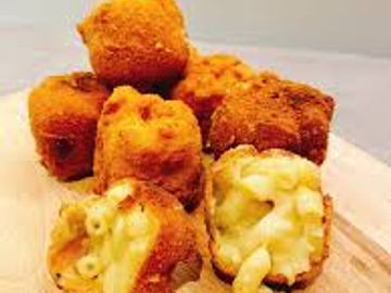 8 BATTER FRIED MAC & CHEESE BITES WITH A CUP OF RANCH FOR DIPPING